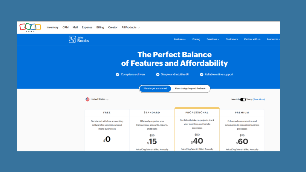 Zoho Books (Entry Tier) [Price below obtained on the 20th of February 2026]