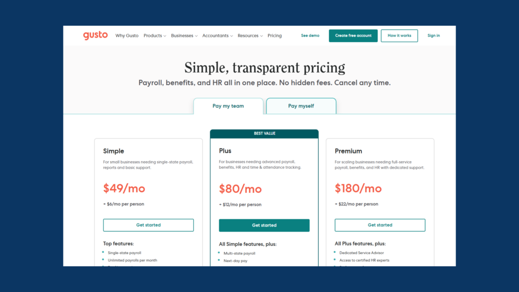 3) Gusto (Simple Plan) — Affordable With Full Tax Filing